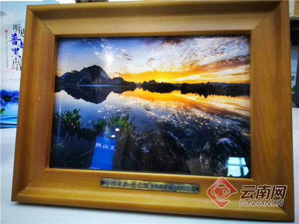 11月18日,在文山壮族苗族自治州决战决胜脱贫攻坚系列新闻发布会(丘北县)专场,丘北县的精美伴手礼之一的丘北县风景相框特别引人注目。该相框是丘北县县委宣传部精心打造的文化精品产品,所有相框中的图片均是来自于丘北县往届“普者黑杯”全国摄影展,是丘北县通过图片讲述丘北故事的方式之一。