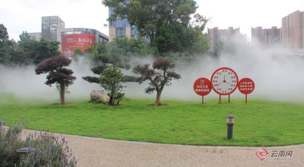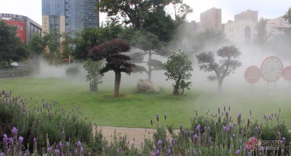 此番新造的喷雾景可美化环境、改善空气质量、营造和谐的生态环境。造雾专用喷头喷出的水是经过精密过滤后的清洁用水,成雾生态环保,并实现了中水资源的循环利用。