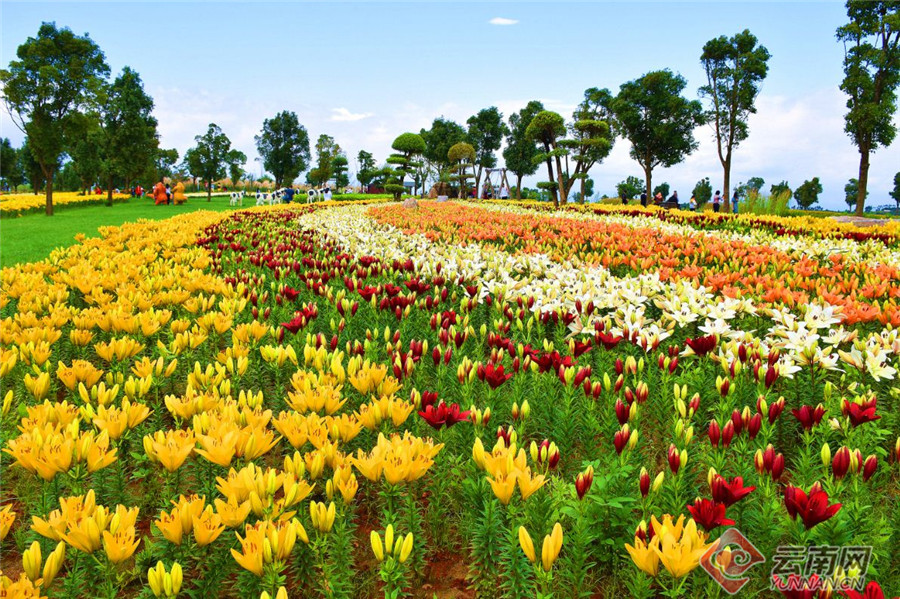 如今,千亩美女樱花开成海,近千亩黄如金的雏菊、紫如黛的紫柳、黄红粉白橙的五色百合,在十月竞相绽放、鲜艳似火,或热烈、或奔放、或淡雅,给游客一场“颜值”满分的颜色“冲击波”,让游客既可远观碧水、蓝天、祥云,又可近赏千亩五颜六色的美丽鲜花,醉了游客,靓了荒山。