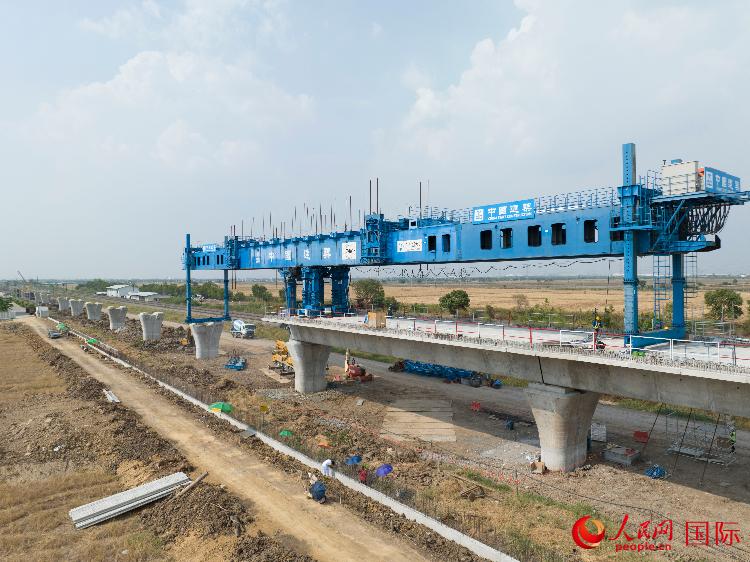 人民网曼谷4月29日电 五一国际劳动节到来之际,在泰国大城府,中国建筑承建的中泰铁路项目4-3标段建设者们在近摄氏40度的高温下努力奋战。