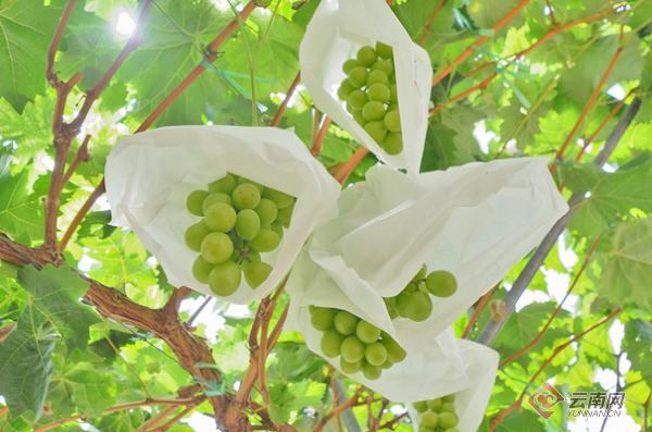 一串串晶莹剔透的葡萄,一辆辆拉运葡萄的车辆……走进昌宁县大田坝镇文沧村“阳光玫瑰”葡萄种植示范基地,数十名工人正忙着下车、分拣、包装、上车,一派繁忙景象。